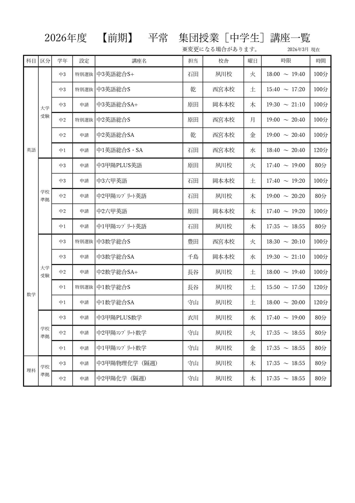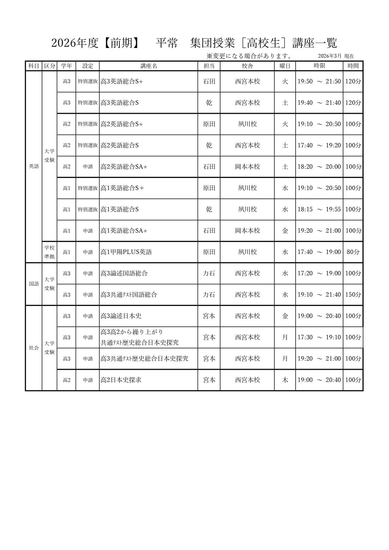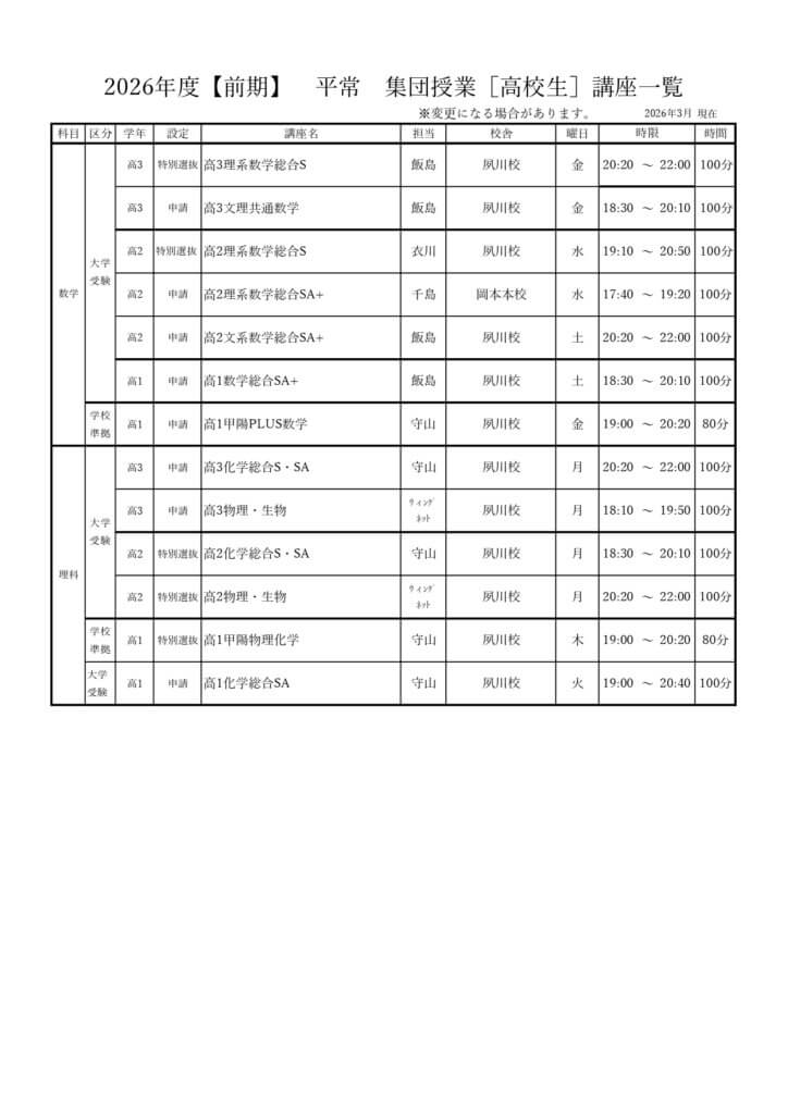 | S | 東大京大国公立医学部レベル志望者対象 |
