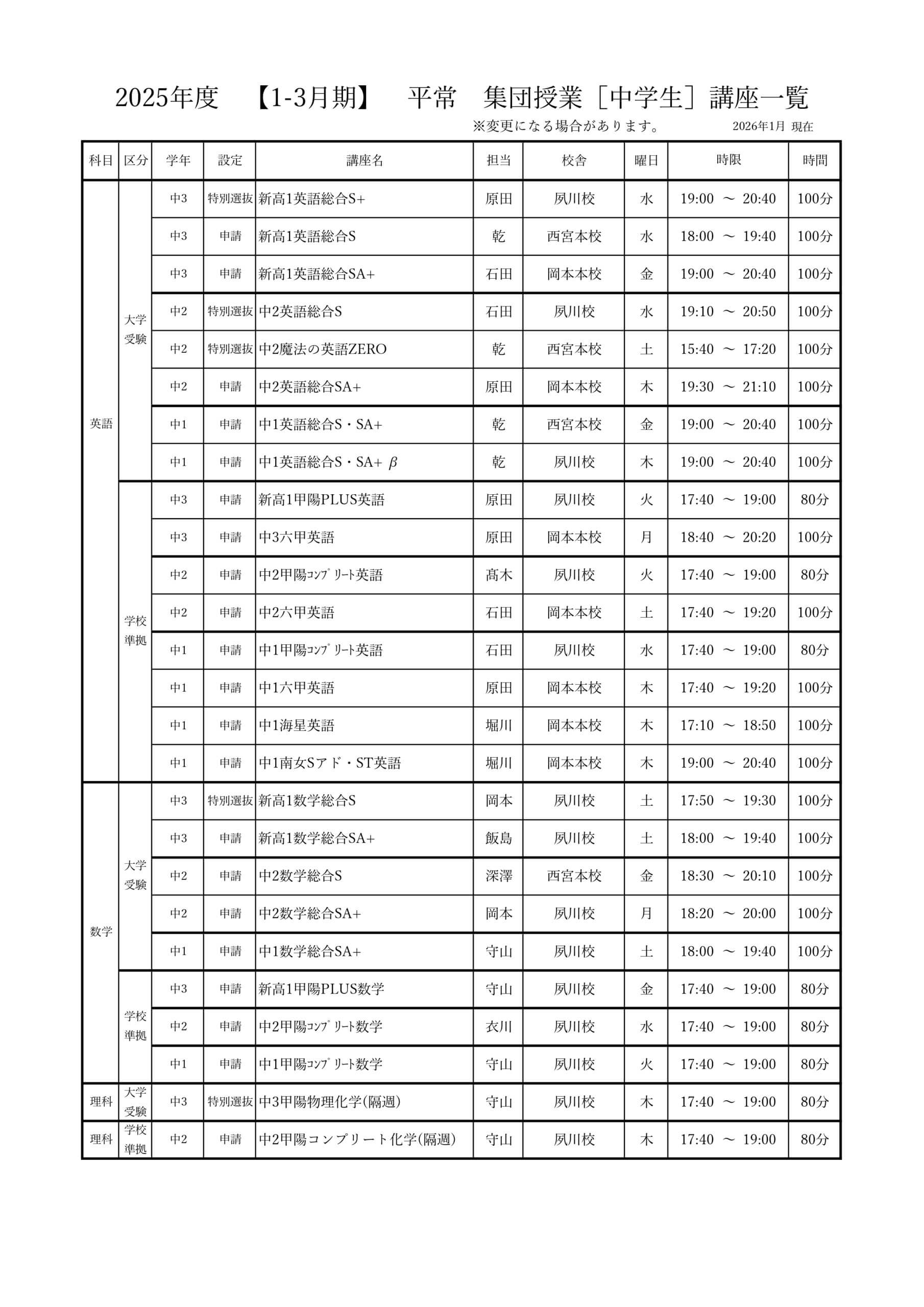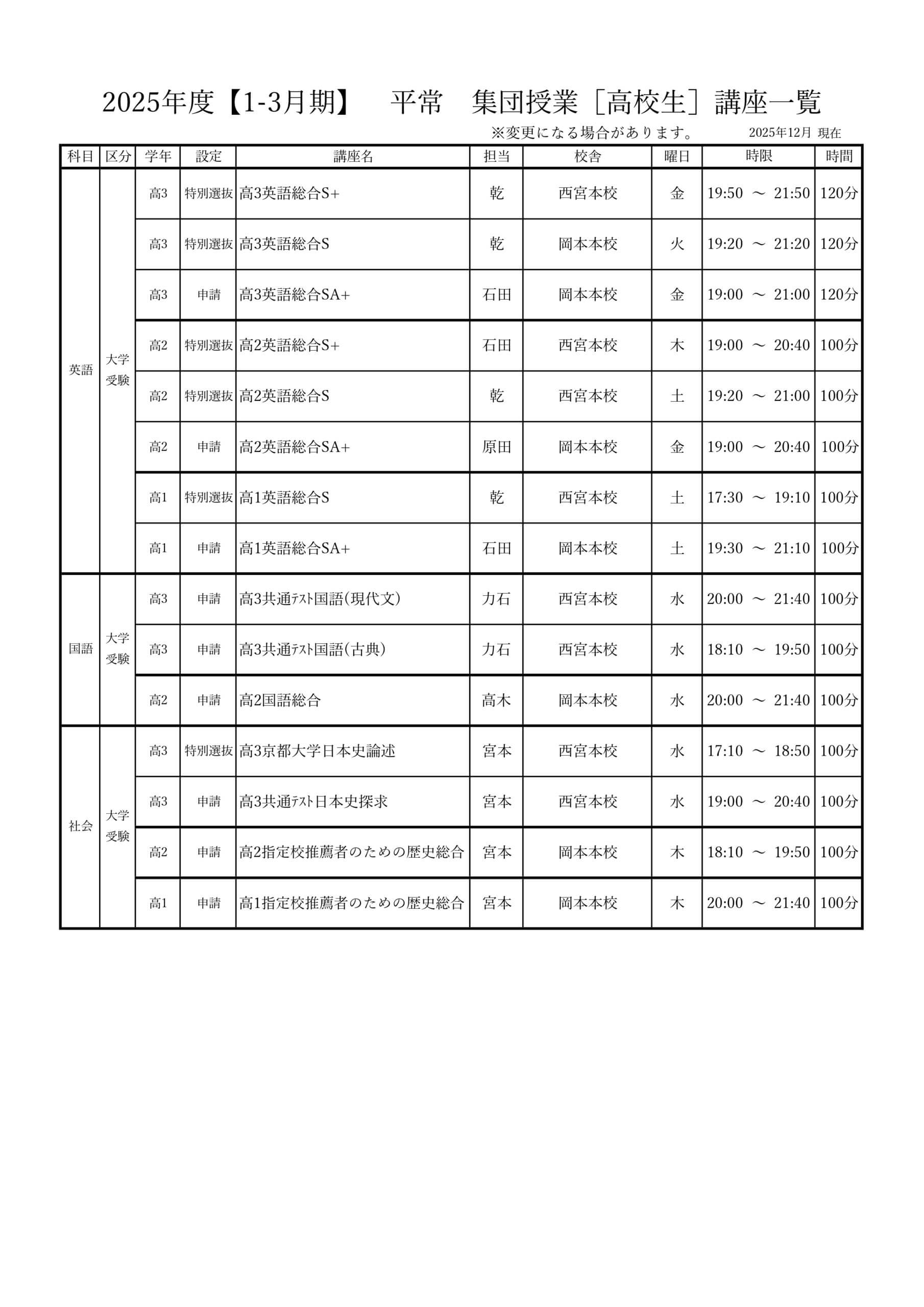 | A | 地方国公立大・関関同立レベル志望者対象 |