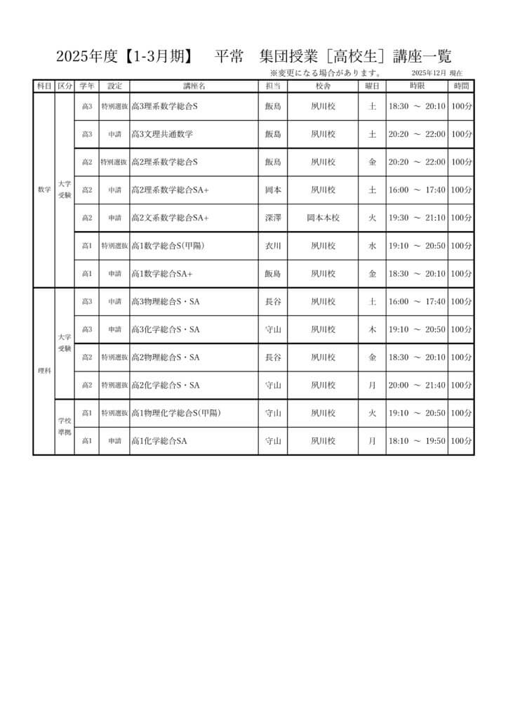 | S | 東大京大国公立医学部レベル志望者対象 |
